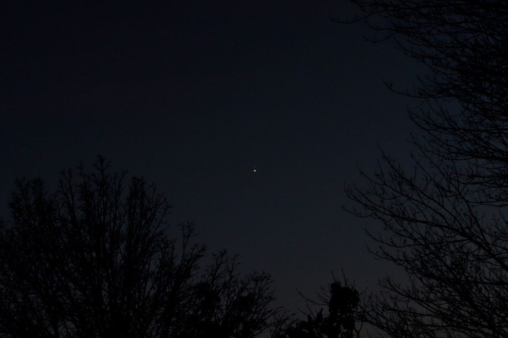 Weather may have played a role in my disappointment, as there was a slight overcast and haze. I had difficulty focusing my digital camera on tripod, even when targeting the nearby crescent Moon, due to the hazy dusk conditions. And I knew from past experiences that the view from my telescopes would have been too blurry to be worth the effort in near-freezing conditions (since the planets were so low in the sky).