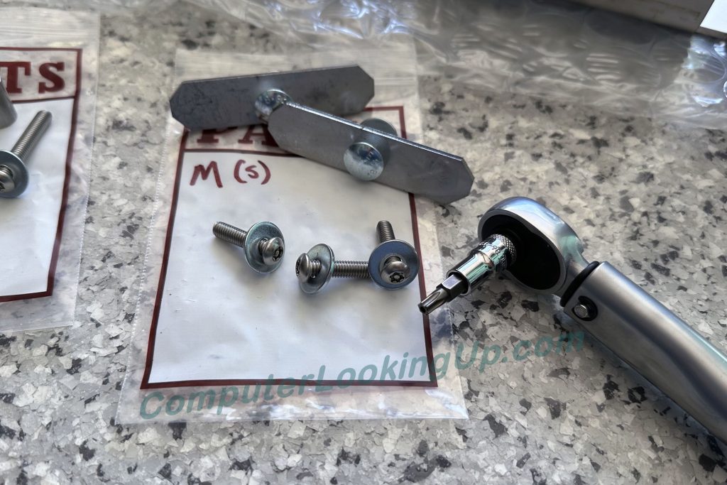 The task was to push each of these into one frame hole and have the bolts drop through the other hole. Frankly, it looks scary in the videos. What if I lost them? They would be near-impossible to retrieve.