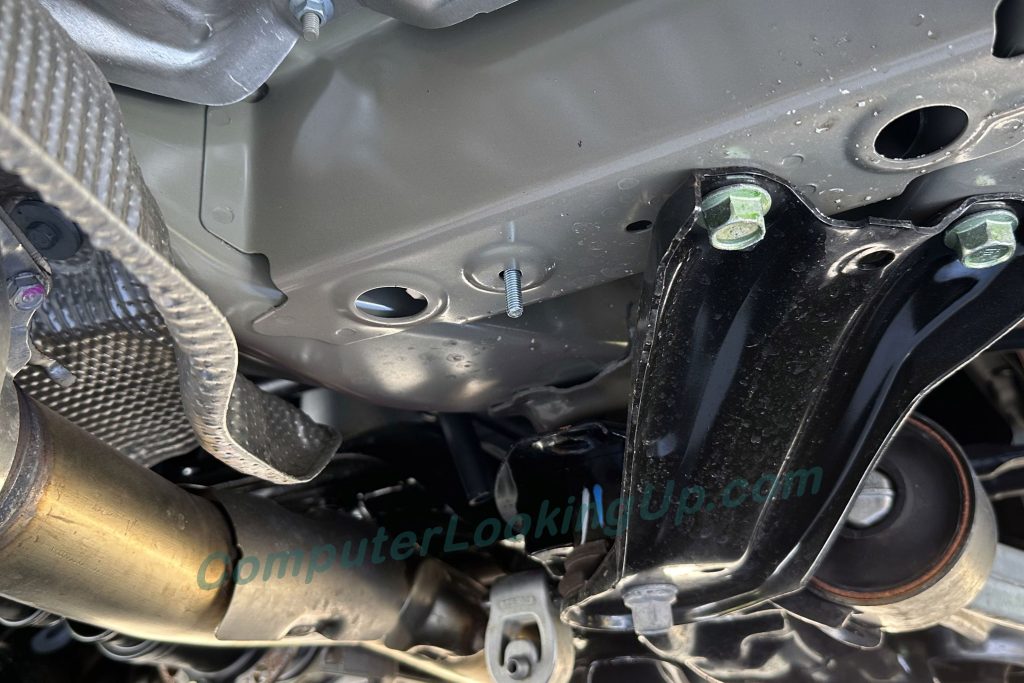 The catalytic/rear skid plate attaches by only three bolts: two onto the mid skid and one above the catalytic converter leveraging a bolt slot for the heat shield.