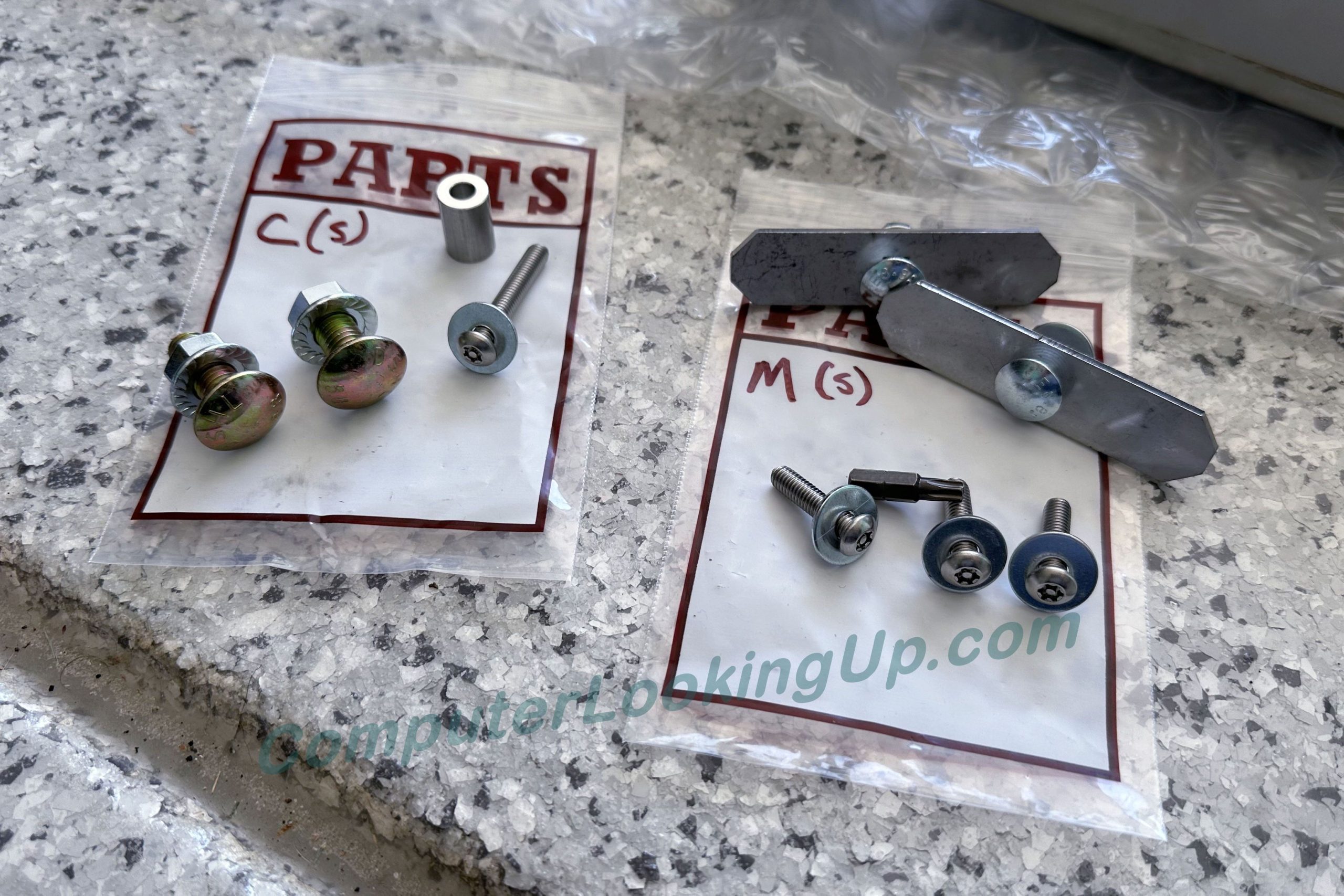 The task was to push each of these into one frame hole and have the bolts drop through the other hole. Frankly, it looks scary in the videos. What if I lost them? They would be near-impossible to retrieve.