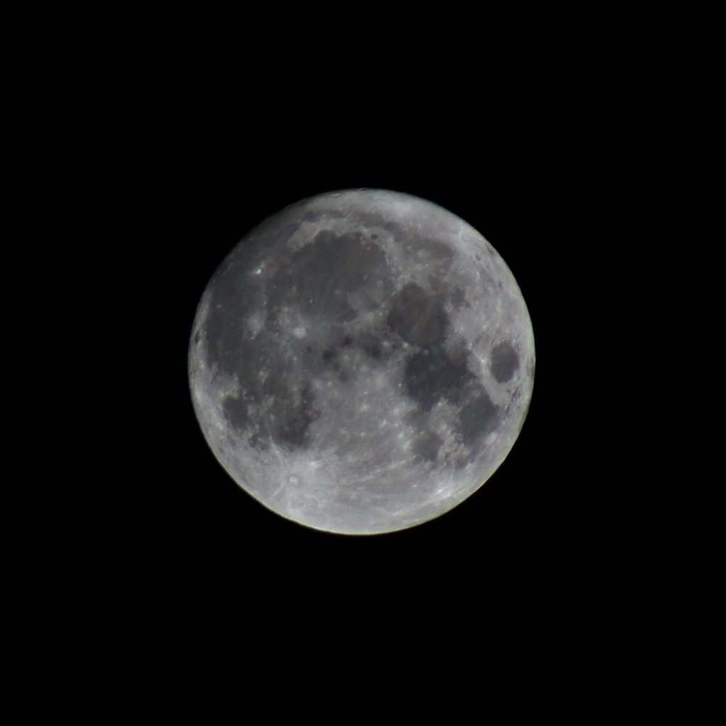 This is an “almost” Full Moon. If you look closely on the upper left you can still see a few crater shadows. Technically it won’t be truly full for another 16 hours.