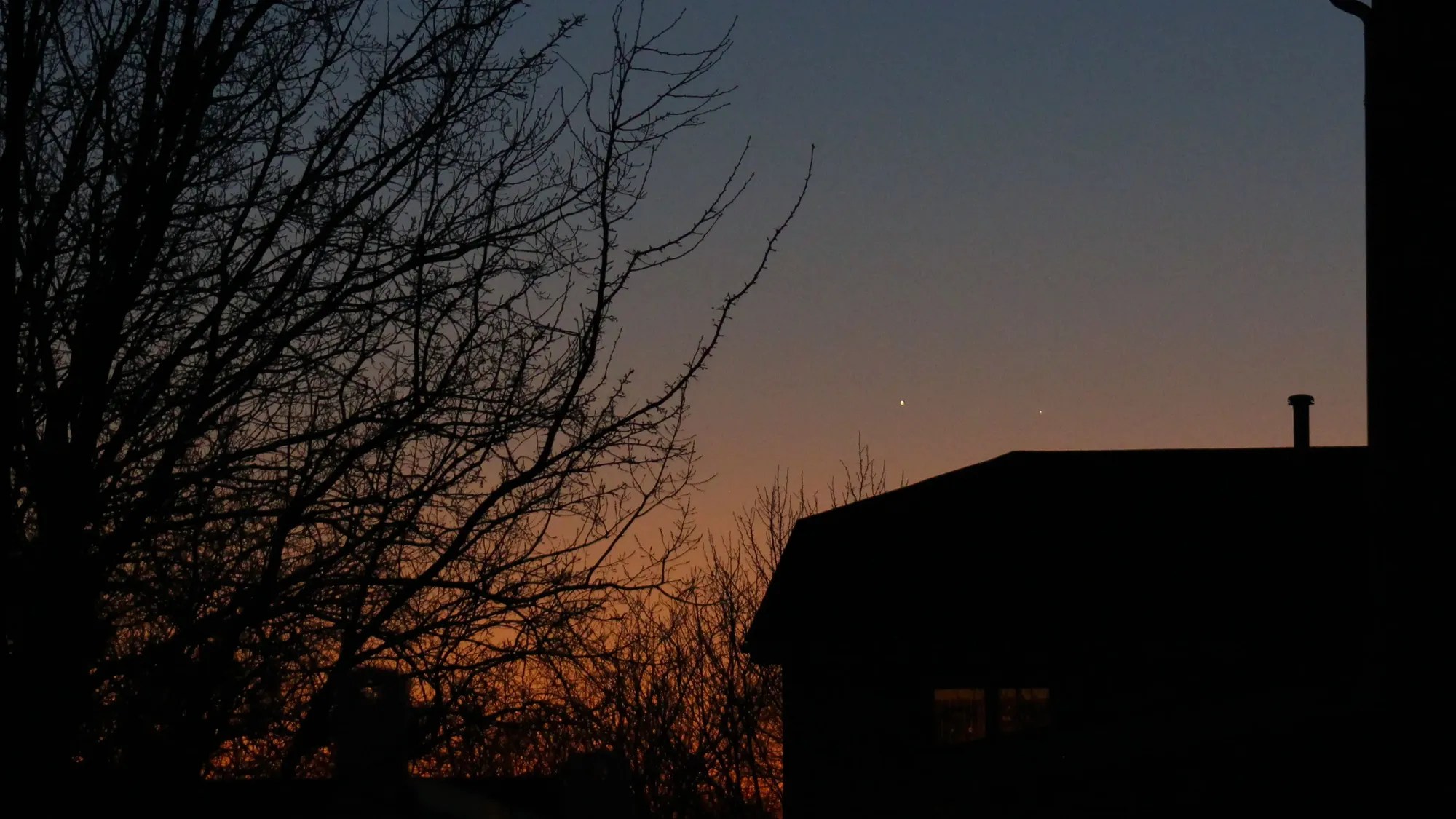 As you can see in the picture, I had maybe a minute before the planets would have been lost below that house.  This only emphasizes how little time there was; 30 minutes past Sunset was already almost too late.